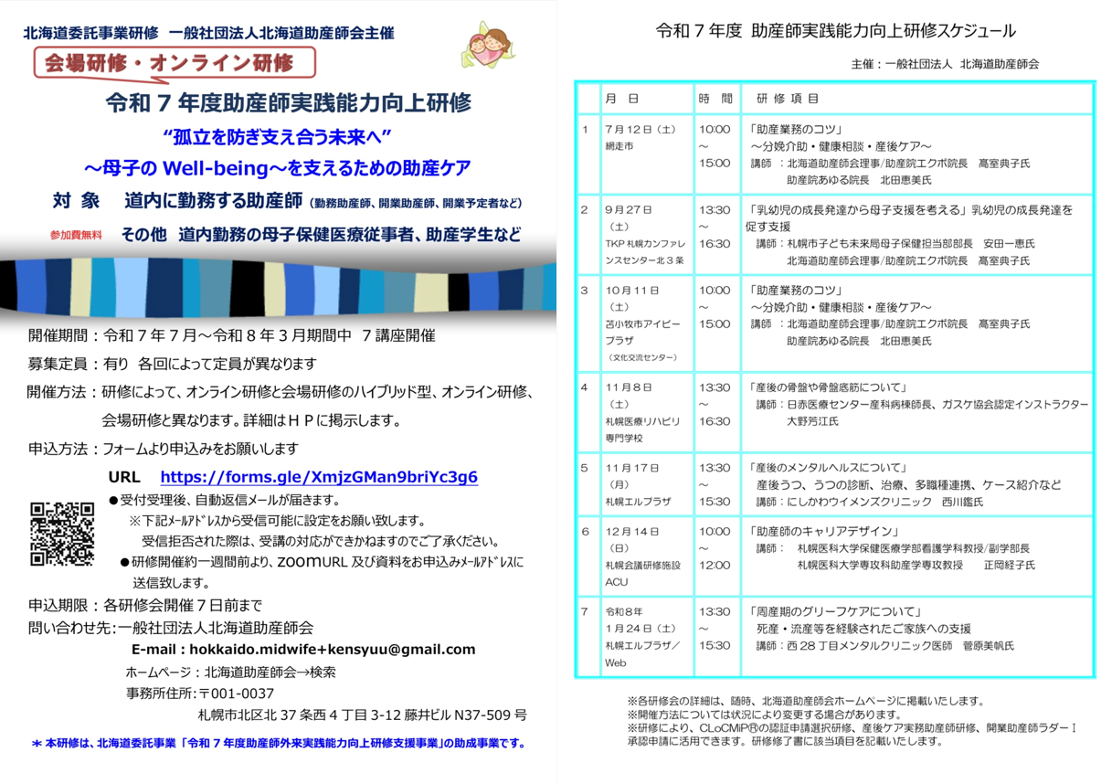 令和7年度助産師実践能力向上研修について